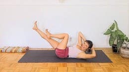Lydia leads an energizing core flow peppered with shoulder openers. We begin focused on breathing evenly around the entire ribcage, warm the body with lunge salutes, and move into supine abdominal work with the option to open into Wheel.